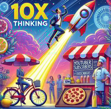 10x isn’t about working more—it’s about thinking differently. Like building a rocket instead of a faster bicycle, you make bigger leaps instead of slow improvements.